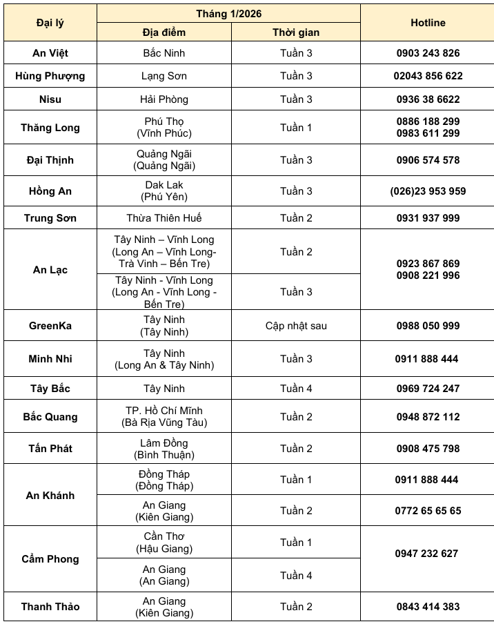Nhằm tri ân khách hàng đã tin dùng sản phẩm cùng với mong muốn được đồng hành và chăm sóc cho xe được vận hành trong điều kiện hoàn hảo nhất. ISUZU Việt Nam xin gửi đến Quý Khách hàng lịch trình tổ chức chương trình “Bảo dưỡng & Sửa chữa lưu động” trong tháng 1 năm 2026.